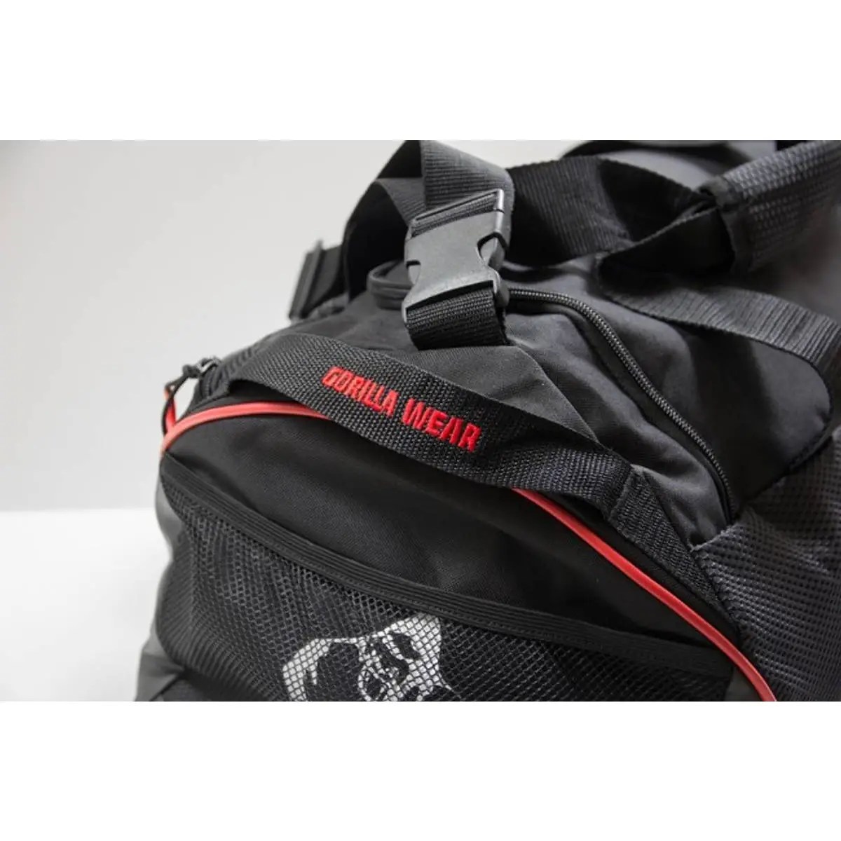 Den nye Gorilla Wear gymbaggen er laget av slitesterkt materiale og har rikelig med lommer for å oppbevare utstyr organisert, og trygt. Den tilbyr enorm lagring og beskyttelse. I tillegg har den en avtakbar, justerbar skulderrem og to håndtak for allsidige bærealternativer.