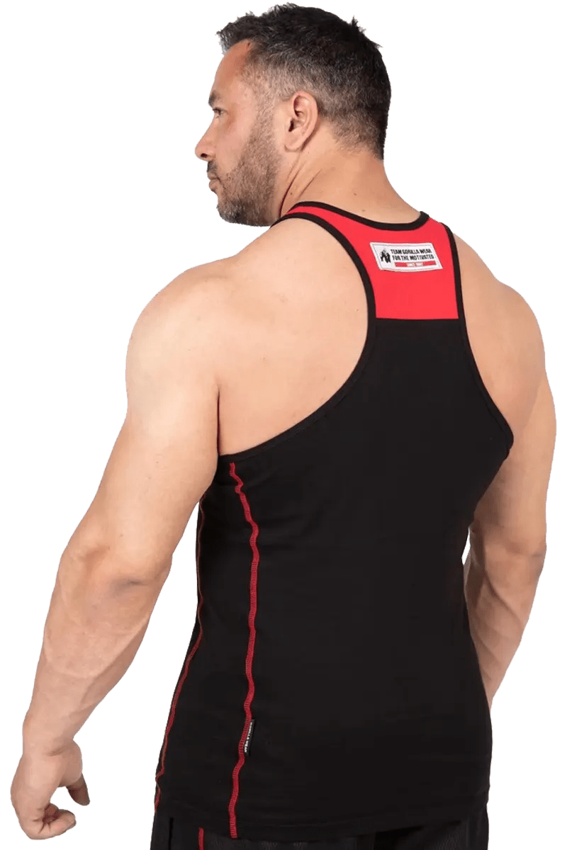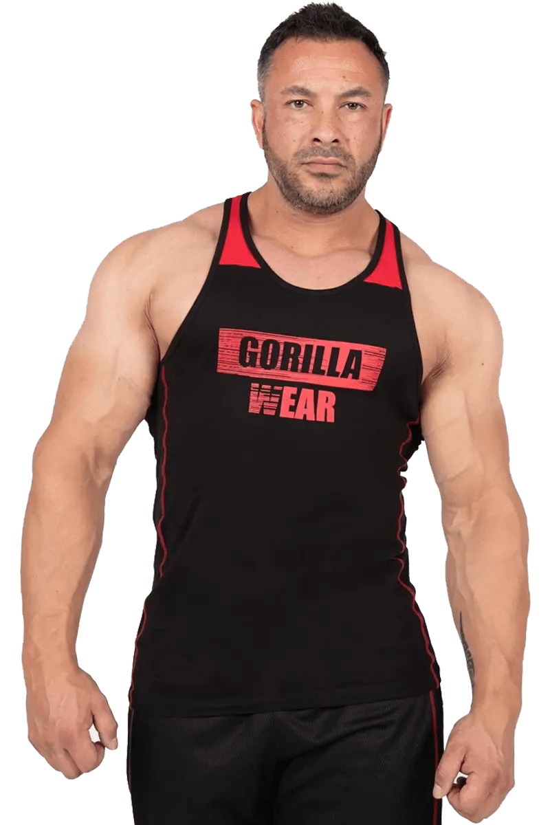 Gorilla Wear sin ikoniske Wallace Tank Top er designet for idrettsutøvere som setter pris på en klassisk touch. Denne singleten med normal passform har et gammeldags utseende like tidløst som din dedikasjon til trening. Wallace Tank Top er laget med fokus på detaljer og har et racerback-design med slående sidesømmer, som skaper en robust, men stilig estetikk. Den store brystlogoen viser stolt frem ditt engasjement for Gorilla Wear-livsstilen. Beregnet for intense treningsøkter, og tilbyr ubegrenset bevegelse og pusteevne. Det er din pålitelige følgesvenn under vektløftingsøkter, og sørger for at du ser og føler deg best mulig mens du presser grensene dine.