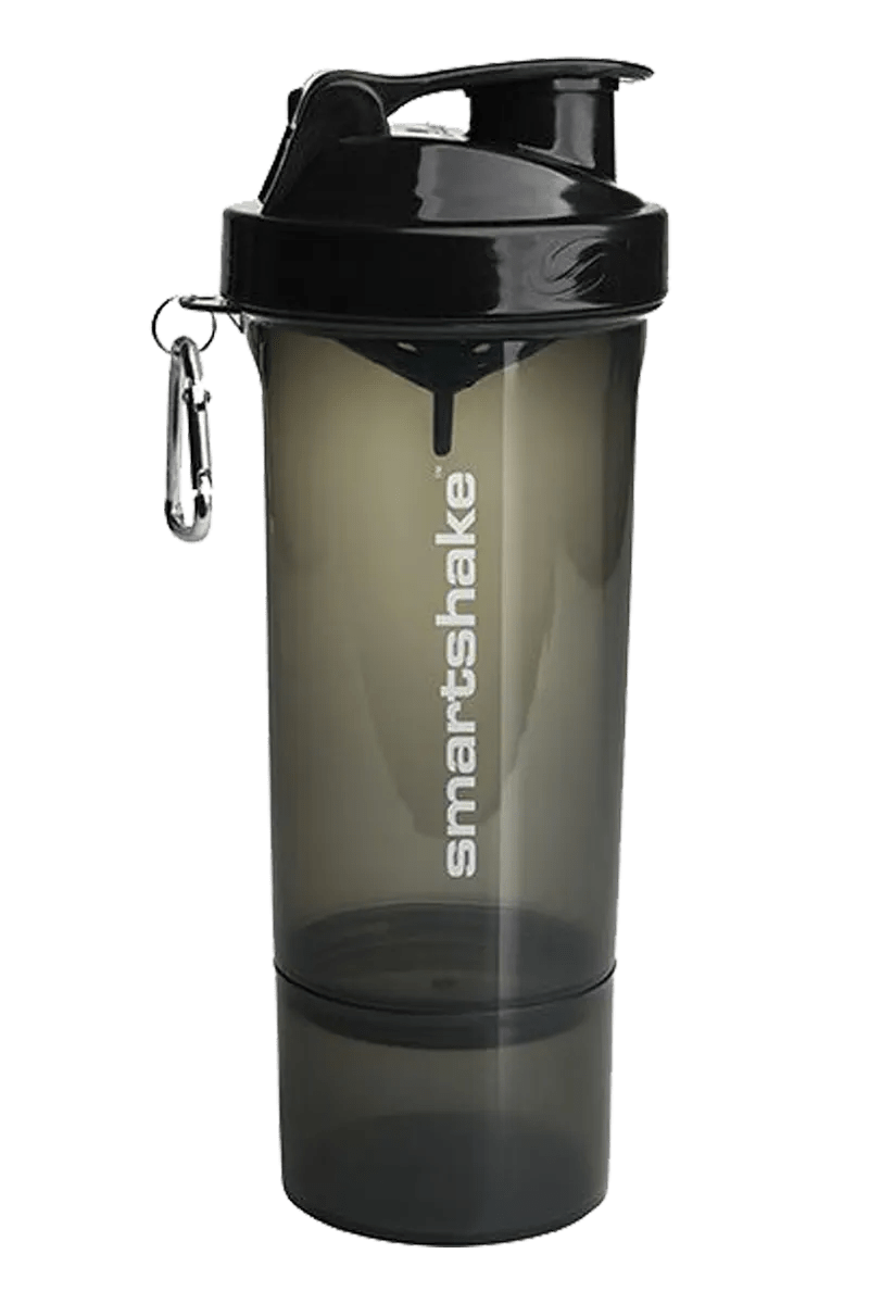 SmartShake Slim rommer 500 ml væske opp til lokket, og tilbyr et monterbart ekstra beholder for sikker oppbevaring av 1 dl ønsket kosttilskudd.