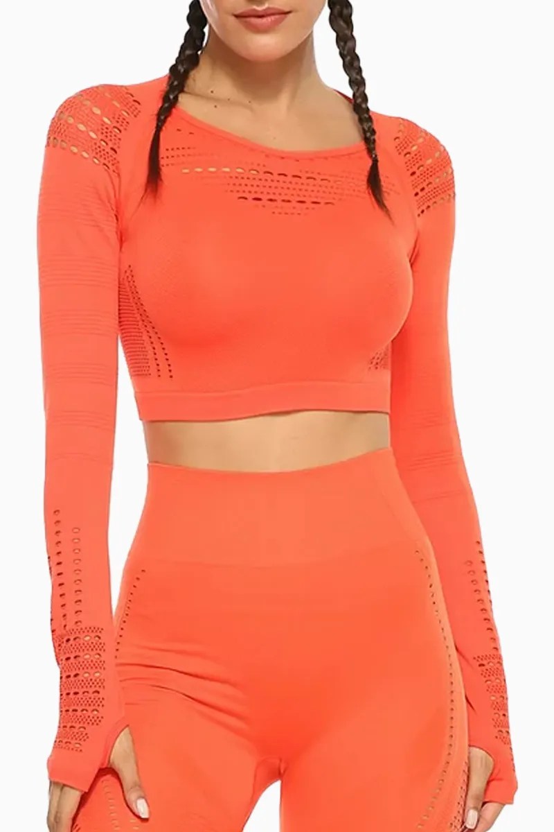 Supermyk, glatt og tøyelig, en perfekt topp i det daglige og til trening. Det er luftehull i de riktige posisjonene som sikrer ventilasjon og holder kroppen pustende mens du driver med sport. Denne toppen er laget ved hjelp av Seamless-metoden og maksimerer komforten din uten at den gnir eller gnager, og støtter brystet på den mest vennlige måten. Den har en god evne til å absorbere fuktighet og transportere svette. Den kan raskt fjerne fuktigheten fra kroppen din og holde deg tørr og luktfri selv etter lang tids trening.