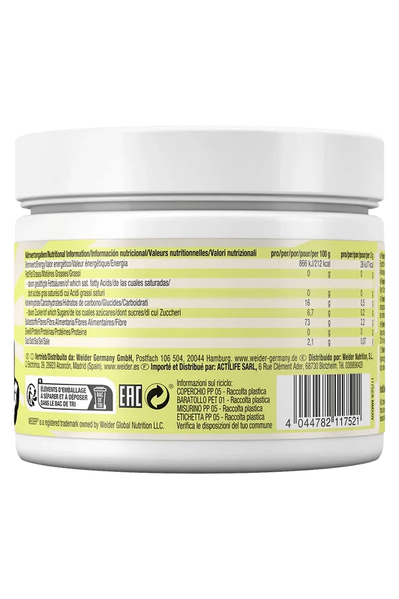 Weider sitt smakspulver er basert på inulin, en naturlig fiber som har mange helsemessige fordeler. Inulin er kjent for å fremme god tarmhelse og kan bidra til bedre fordøyelse. Fiber er en viktig del av et balansert kosthold og kan bidra til å holde deg mett lenger, noe som kan være nyttig for vektkontroll. Ved å bruke Weider sitt smakspulver får du ikke bare en smakfull opplevelse, men også et sunt tilskudd av fiber.